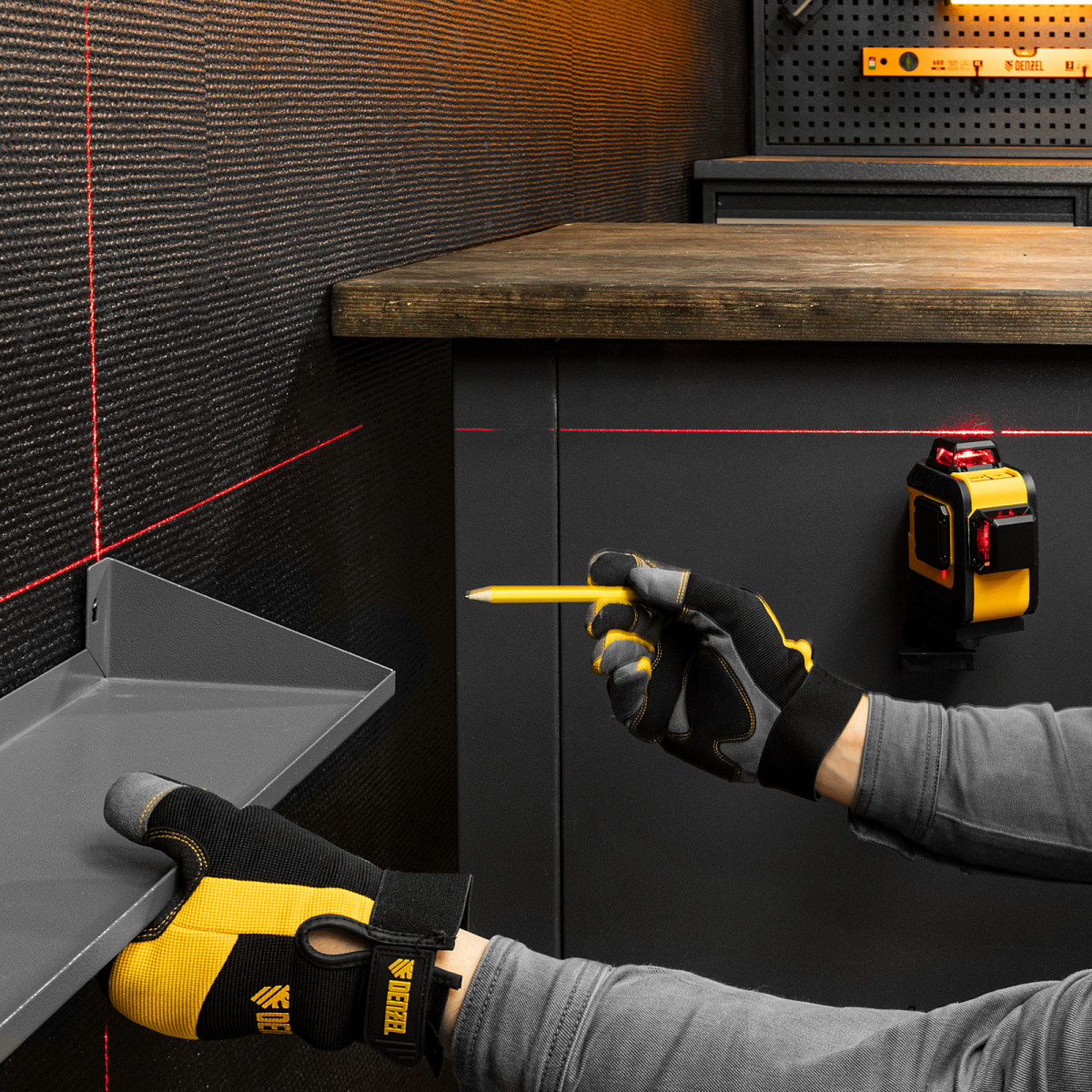 - Оповещение о превышении угла наклона — в случае отклонения уровня более чем на 4° по горизонтали лазерные лучи начинают мигать.