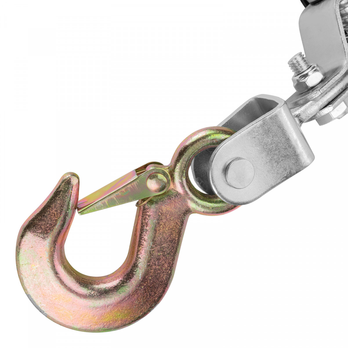 • Безопасная работа — прочный стальной трос диаметром 4,8 мм не рвется под нагрузкой (при соблюдении условий эксплуатации), а стопорный механизм не допускает падения груза.