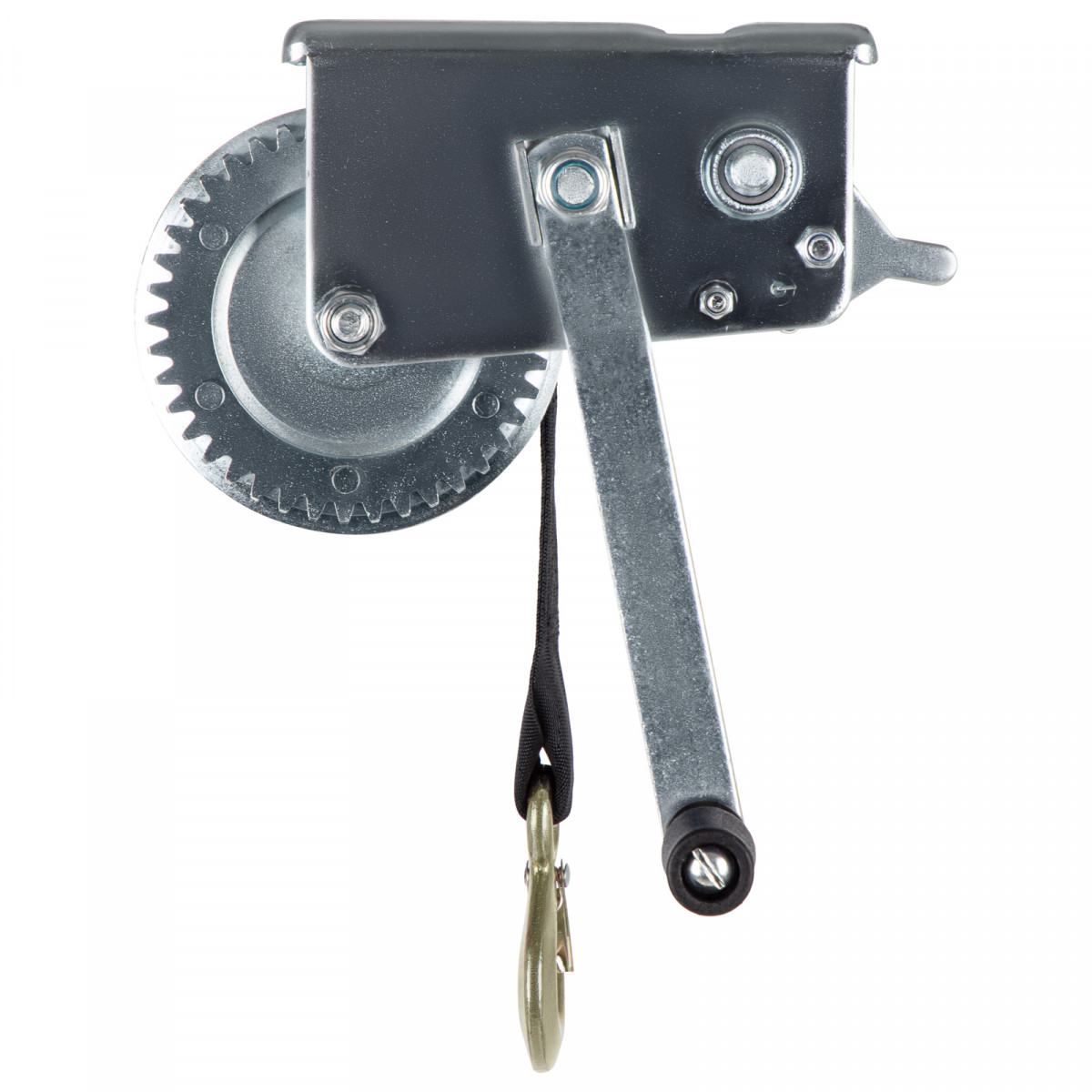 - Корпус лебедки и шестеренчатый механизм выполнены из стали, что гарантирует долговечность всей конструкции.
