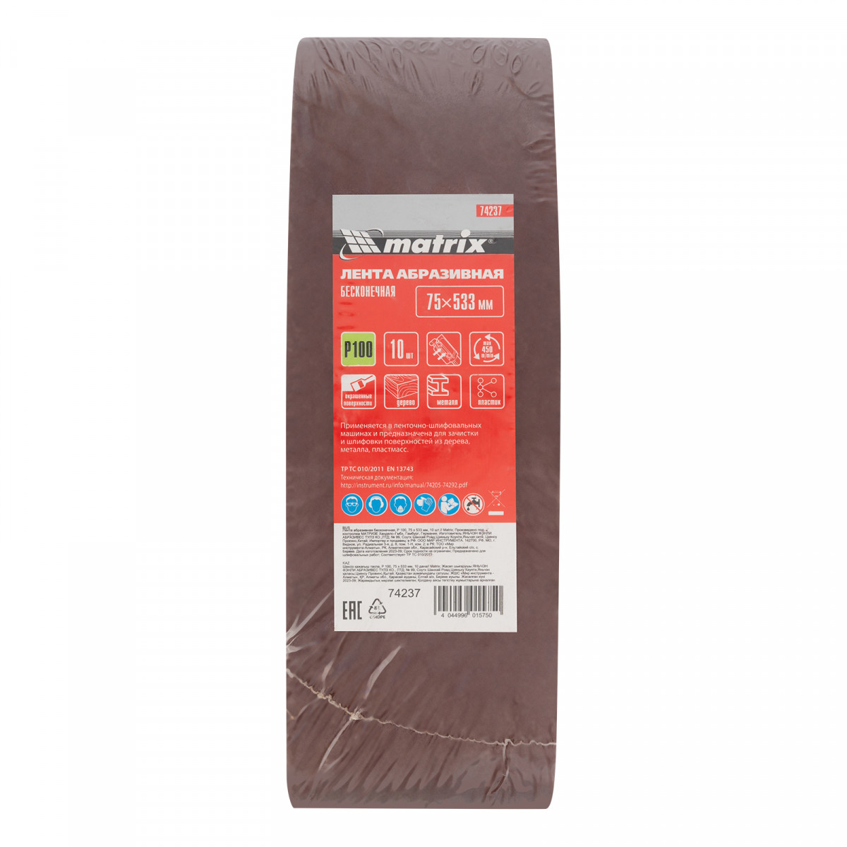 Лента абразивная бесконечная, P 100, 75 х 533 мм, 10 шт Matrix