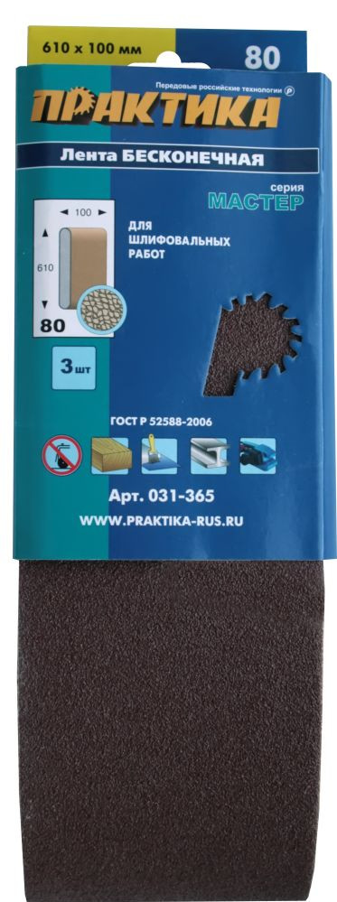Лента шлифовальная ПРАКТИКА 100 х 610 мм P80 (3шт.) картонный подвес