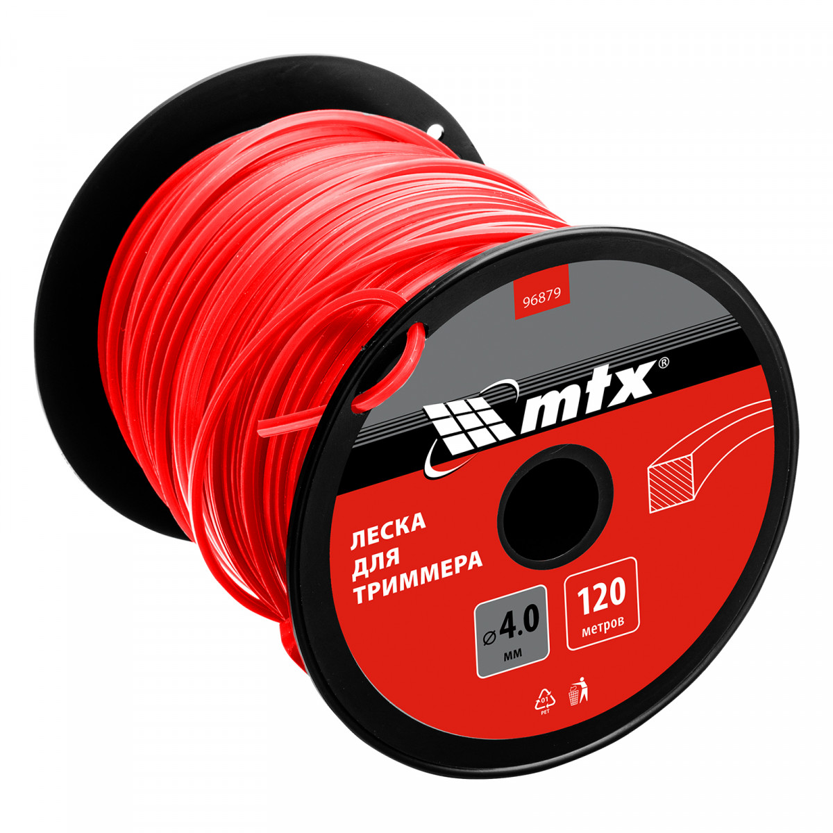 Леска для триммера MTX 96879 квадратного сечения, толщиной 4,0 мм и длиной 120 м, поставляется на катушке и позволяет скашивать мягкую, молодую траву, а также густую и жесткую растительность.