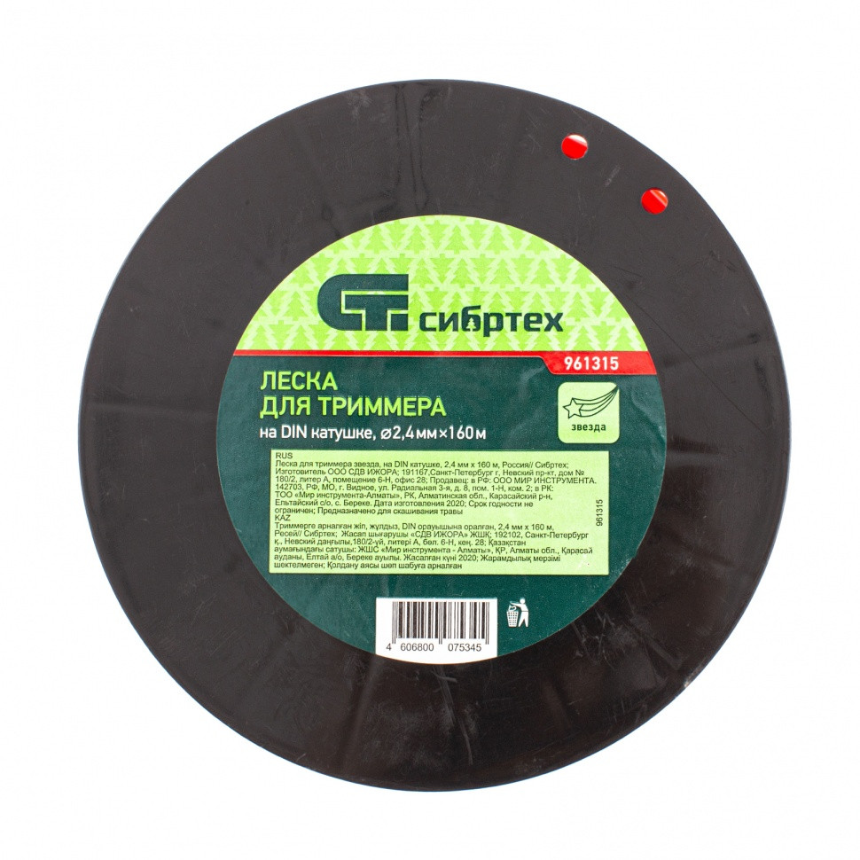 Леска для триммера звезда, на DIN катушке, 2.4 мм х 160 м, Сибртех