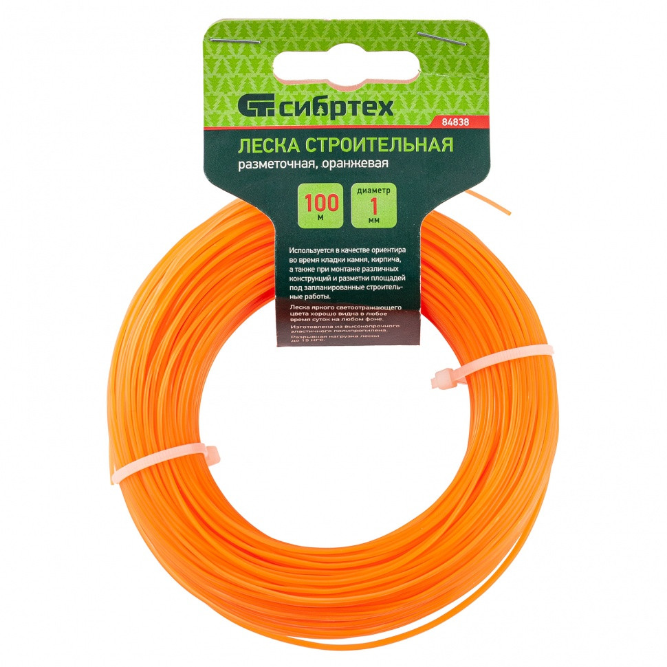 Леска строительная Сибртех 84838, длина 100 м, диаметр 1 мм, оранжевого цвета, пригодится на строительной площадке как ориентир при укладке материалов, установке конструкций. Также она будет полезна для садоводов для разметки территории. Если леску натянуть, то получается идеально ровная линия, что повышает точность работы, а также позволяет проводить замеры с ее помощью.Преимущества: - Леска выполнена из высокопрочного и эластичного полипропилена, поэтому не растягивается, не загрязняется, а также выдерживает разрывные нагрузки до 15 КГС. - Оранжевая светоотражающая леска хорошо видна даже в темное время суток. - 100 м лески хватит на большой объем работ.