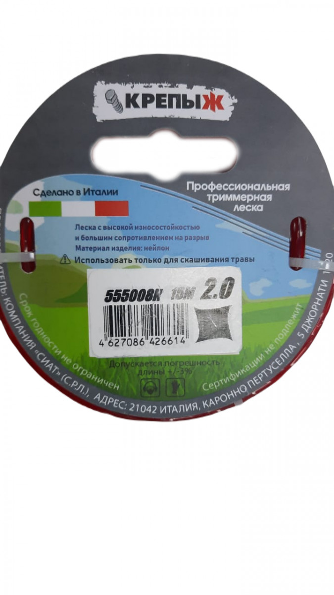 Леска триммерная КРЕПЫЖ SIAT 2.0 АЛЮМИНИУМ КРУГ 15М
