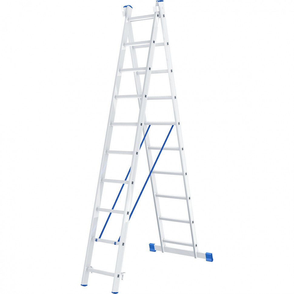 Лестница, 2 х 10 ступеней, алюминиевая, двухсекционная, Сибртех