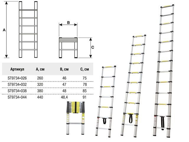 Лестница телескопическая 1-секц. алюм. 15 ступ. STARTUL