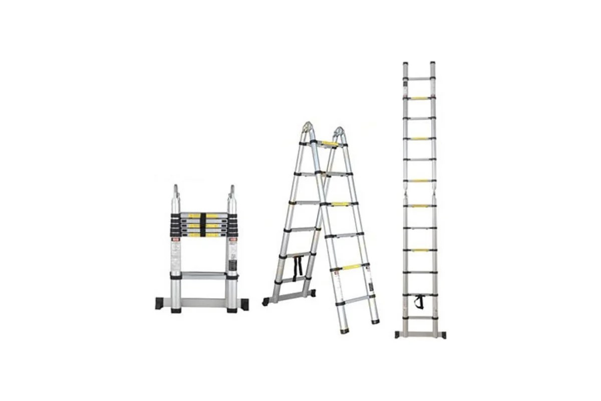 Телескопическая алюминиевая лестница STARTUL 2х8 ступеней ST9733-050 используется как стремянка и в качестве приставной лестницы.