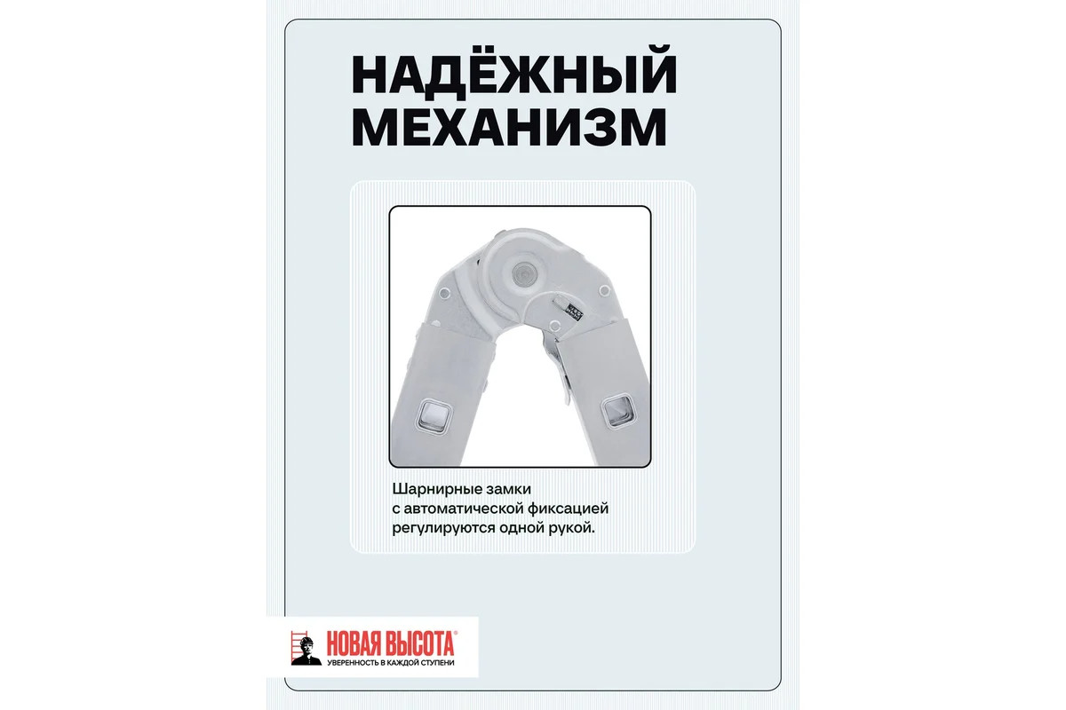• Преимущества Новая Высота 4 рабочих положения; Лестница сделана из алюминиевого профиля - прочность и надежность;