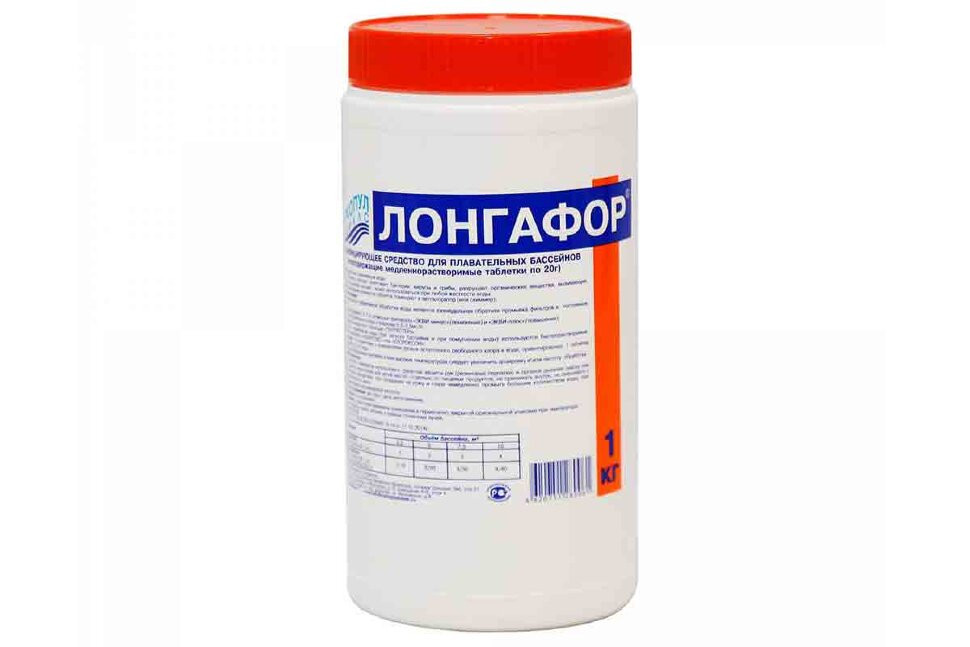 Лонгафор в таблетках по 200 гр. для плавающих дозаторов, предназначен для обеззараживания воды и уничтожения вирусов и бактерий. Препарат эффективно разрушает органические вещества, вызывающие мутность воды, а также надежно противодействует росту микроспор зелёного планктона в открытых бассейнах. Отлично подходит для осветления воды в бассейне. Благодаря специальному химическому составу, а также уникальной методики изготовления, таблетки Лонгафора медленно растворяются в воде, постепенно и с равной концентрацией. Полное растворение таблетки в бассейне от семи до четырнадцати дней в зависимости от температуры и жесткости воды.