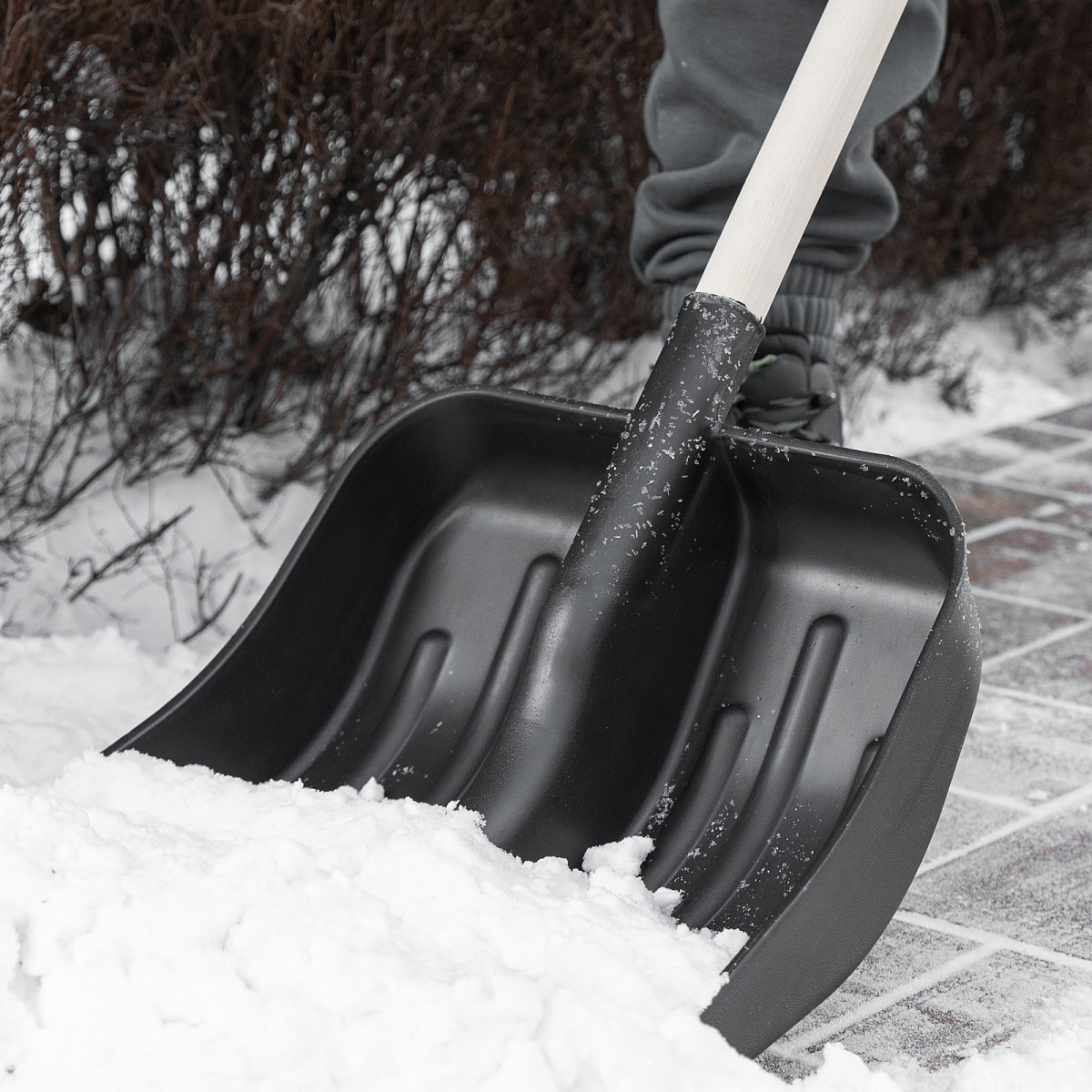 • Эффективная работа — углубленный ковш с бортиками вмещает много снега, защитная накладка из алюминиевого сплава предотвращает износ кромки и облегчает очистку слежавшегося снега и наста.