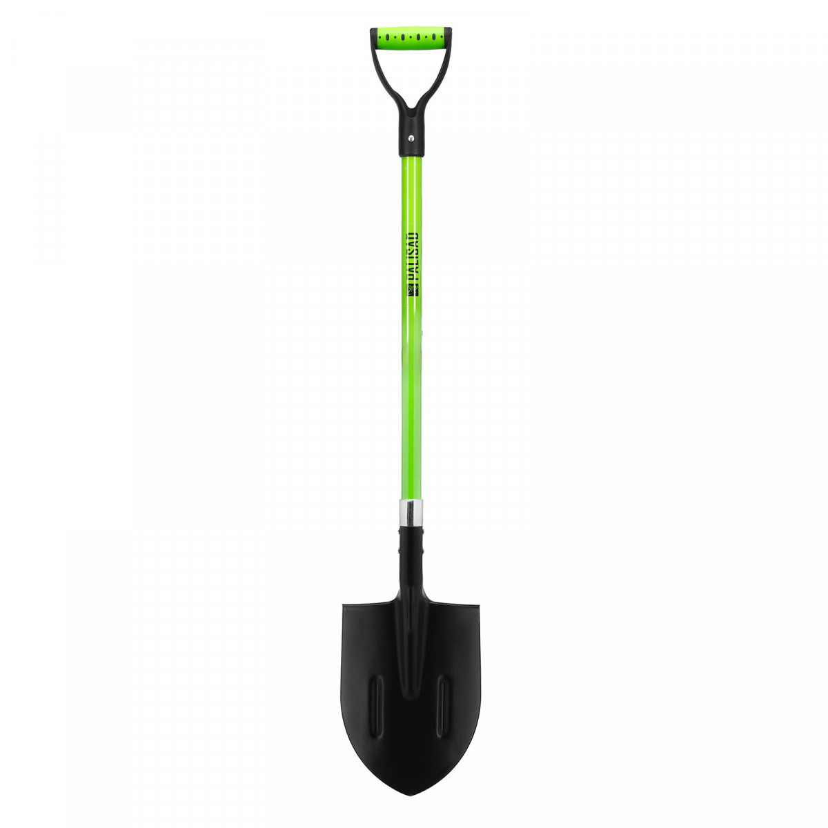 - Продуманная конструкция — фибергласовый черенок не утяжеляет лопату и не разрушается под действием ультрафиолета, а удлиненная цельновырубная тулейка предотвращает его излом.