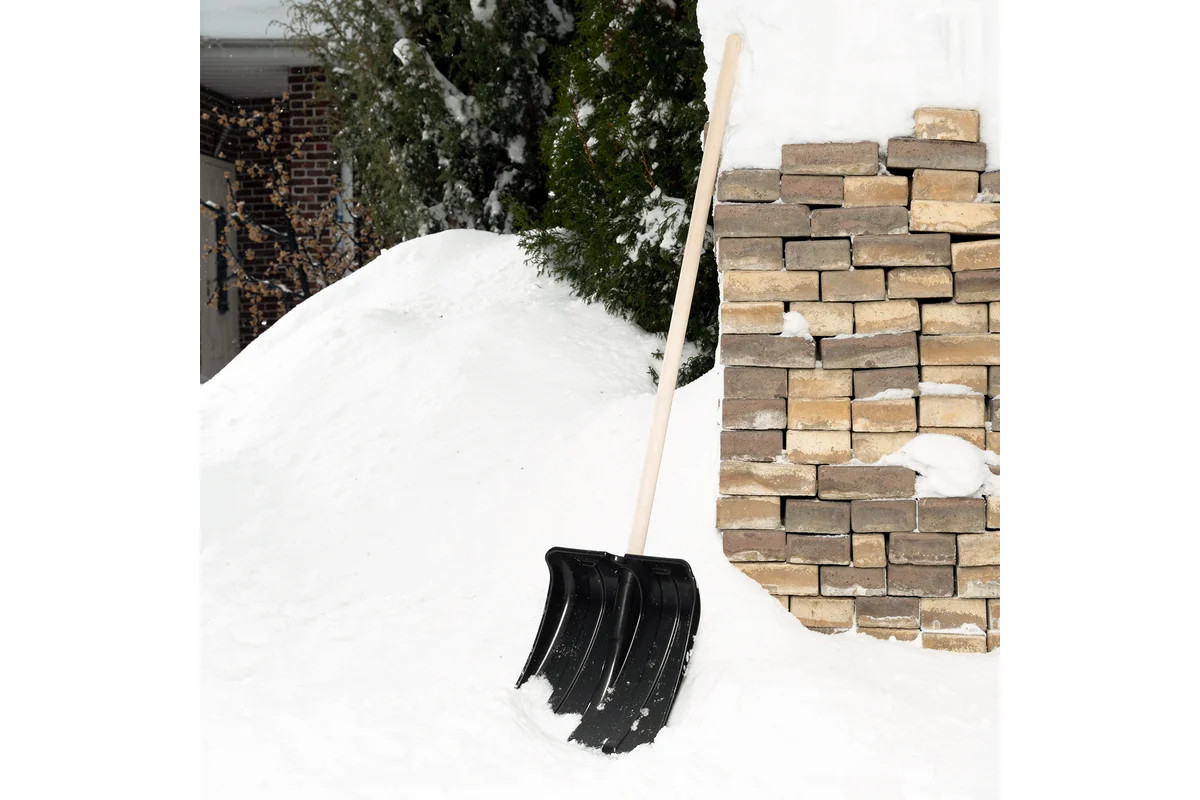 Пластиковая лопата используется для уборки снега на занесенных дорожках, тротуарах, подъездных путях. Эффективность работ обеспечивается благодаря вместительному ковшу с высокими бортиками. Ковш можно установить на черенок диаметром 32 мм. Преимущества: - Рабочая плоскость, усиленная ребрами жесткости, выдерживает повышенные нагрузки без риска излома. - Ковш из ударопрочного полипропилена рассчитан на работу при температуре до -30 градусов и подходит для многократного использования. - Кромка ковша защищена от истирания алюминиевой окантовкой и легко проникает в плотный снег и наст.