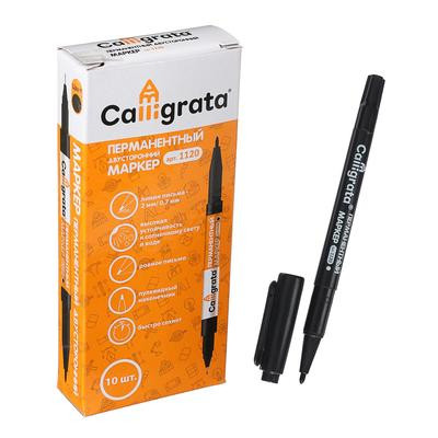 Маркер перманентный Calligrata 1120 двусторонний 0.7мм/2мм, черный, предназначен для офисного, складского и домашнего использования. Используется для маркировки и письма на всех поверхностях: бумага, картон, стекло, ластик, фарфор, керамика, дерево.