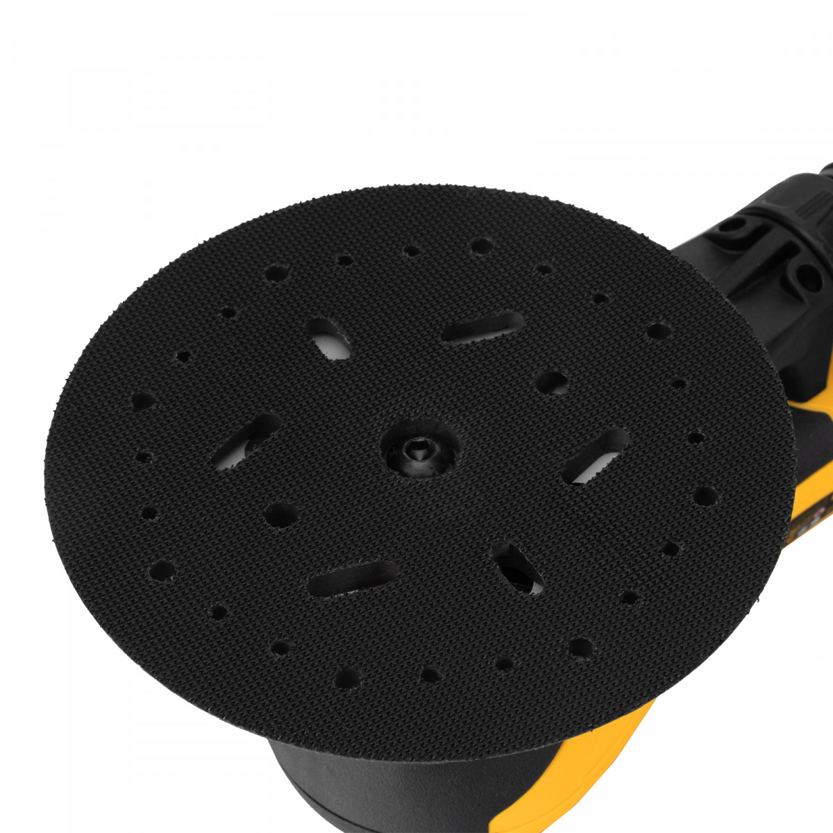 Эксцентриковая шлифмашина совместима со шлифовальными кругами диаметром 150 мм. Во время работы подошва совершает вращательные движения в комбинации с колебательными, что обеспечивает повышенную производительность и успешное решение поставленных задач.