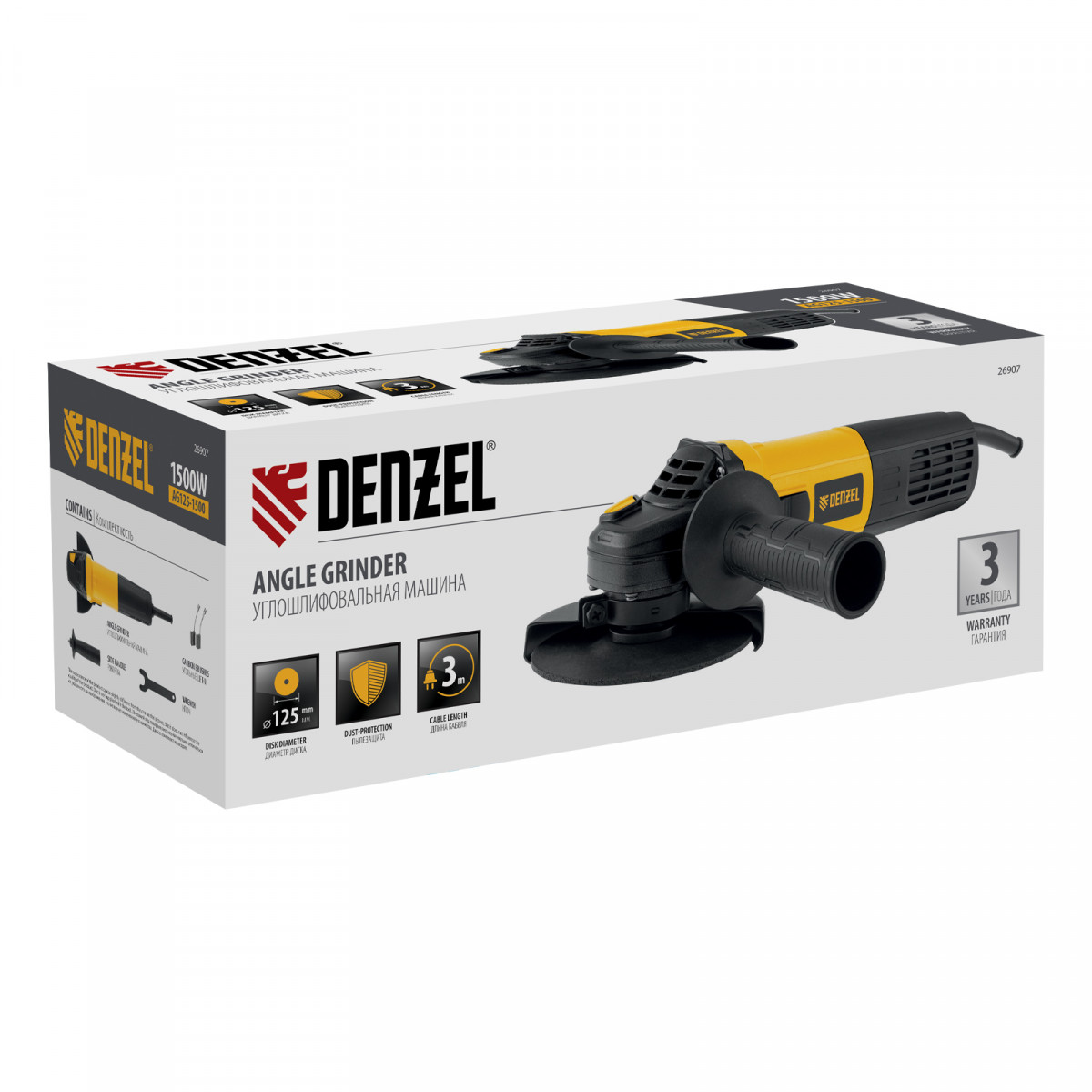 Машина шлифовальная угловая AG125-1500, 1500 Вт, 125 мм, 3000-11000 об/мин Denzel
