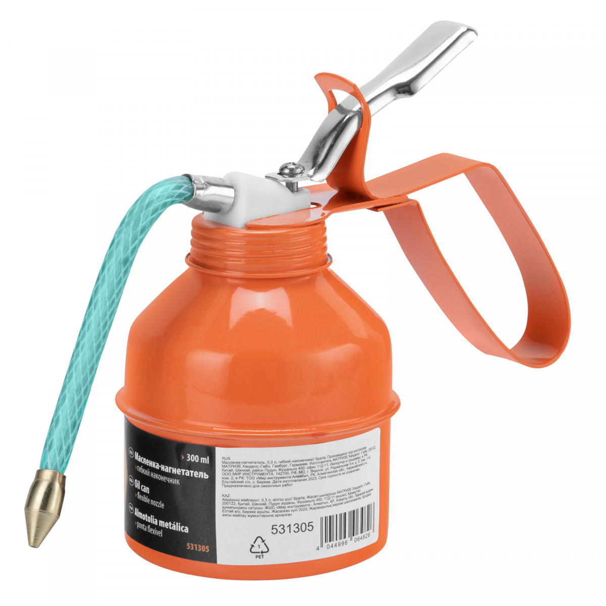 Масленка-нагнетатель Sparta 531305 объемом 0,3 л, с гибким наконечником, применяется в автомастерских и гараже для проведения ТО авто. С ее помощью можно быстро залить технические жидкости. Благодаря гибкому носику можно работать в труднодоступных местах.