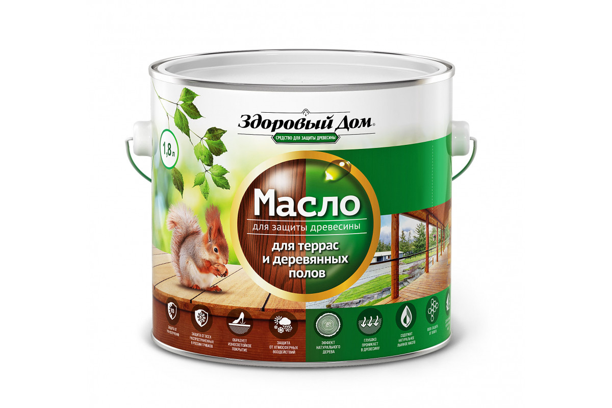 Масло для террас и деревянных полов Здоровый Дом Палисандр 1,8л