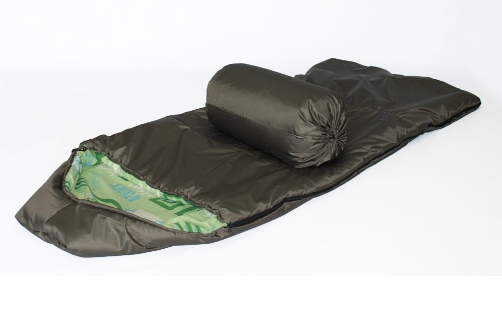 Спальный мешок с капюшоном, на молнии, расстегивается одеялом. Ширина в застегнутом состоянии 90 см.