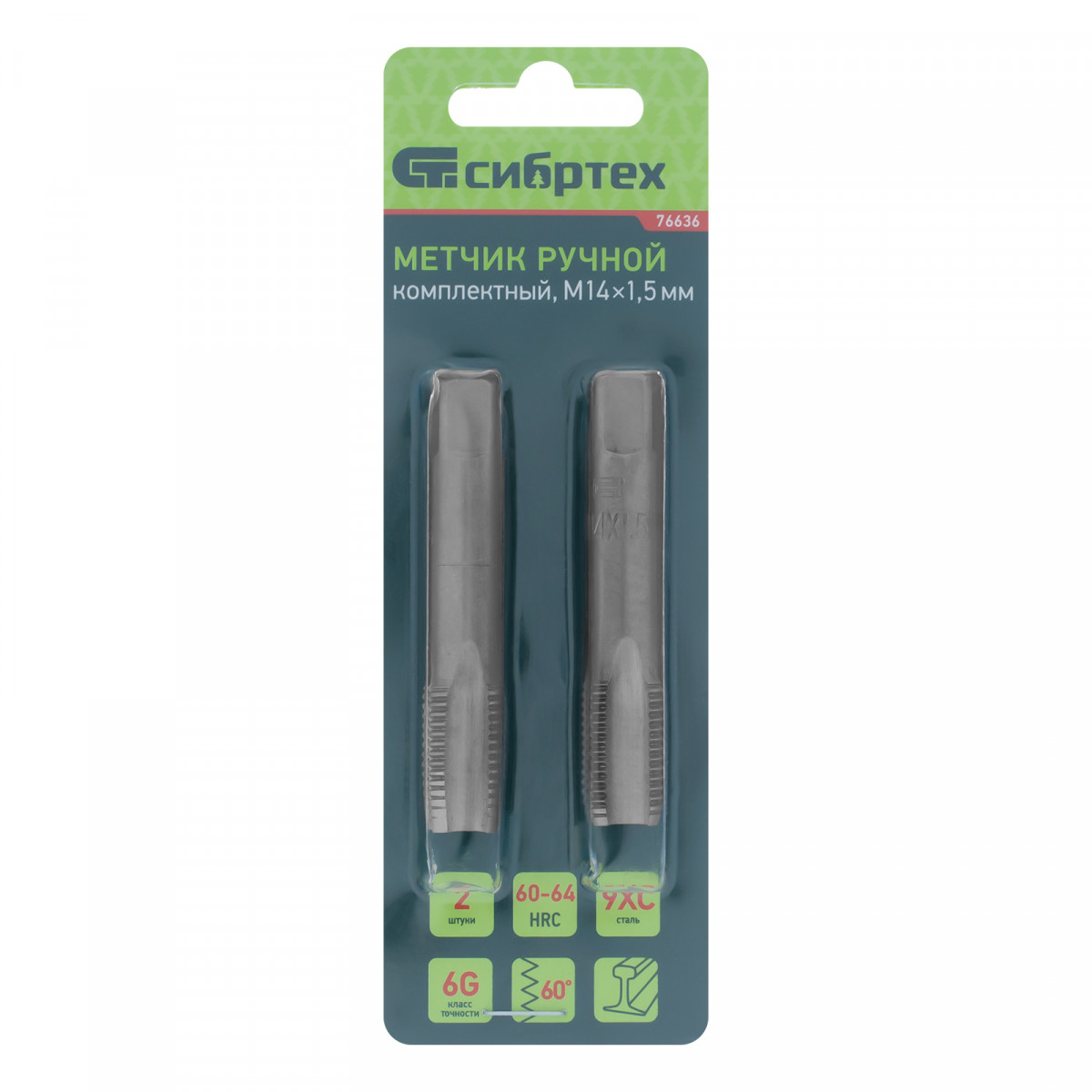 Метчик ручной М14 х 1.5 мм, комплект из 2 шт Сибртех