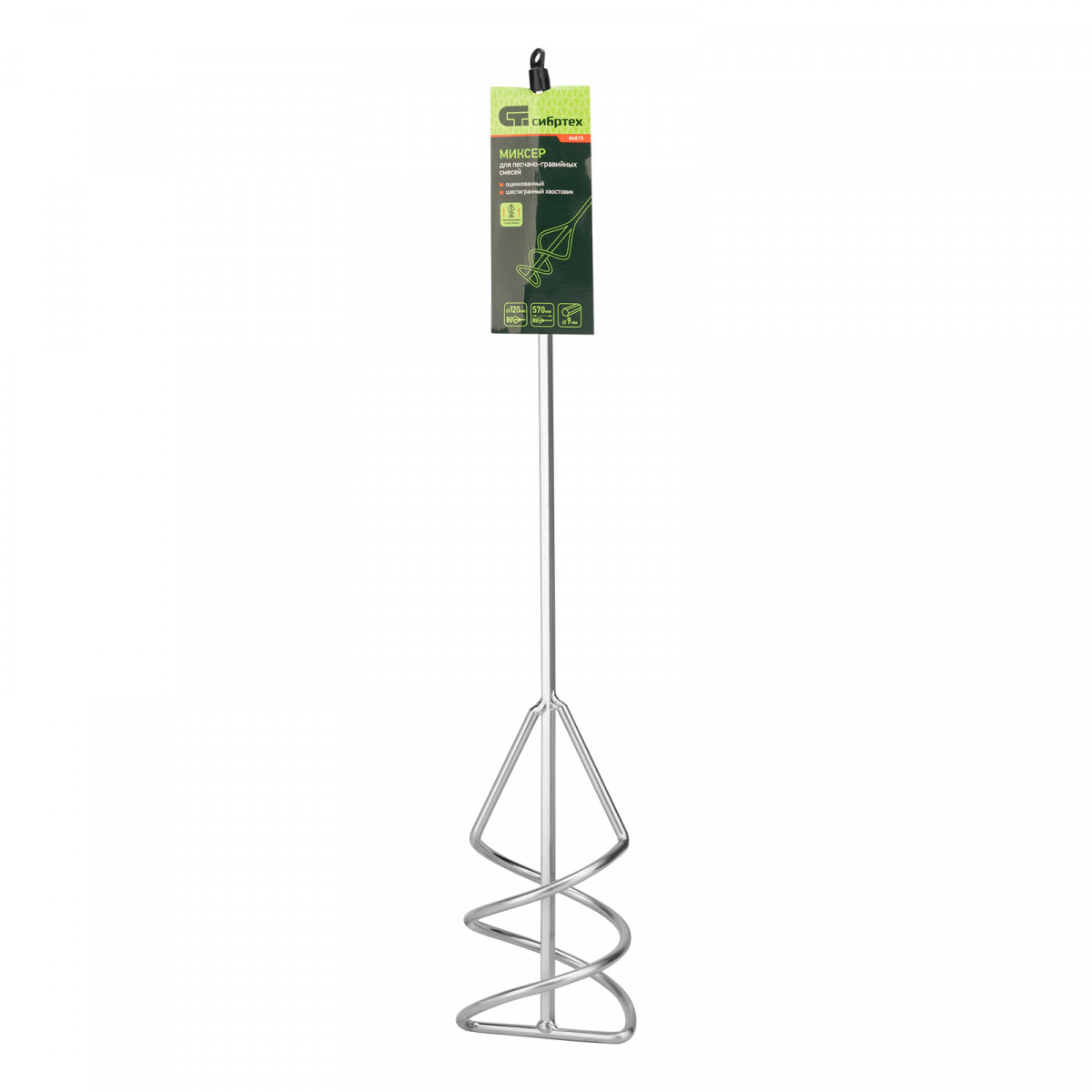 Миксер Сибртех 84815 из оцинкованной стали, диаметром 120 мм, длиной 570 мм, предназначен для перемешивания штукатурки, шпатлевки, цементных растворов, песчано-гравийных и других тяжелых смесей. Правосторонний венчик, вращаясь, не дает тяжелым частицам опускаться вниз, что способствует образованию однородной массы. Инструмент пригодится на строительной площадке и во время ремонта.