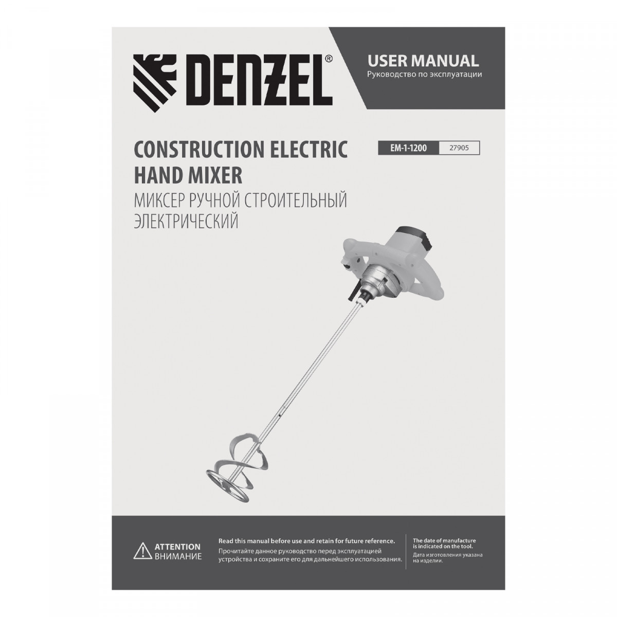 Миксер строительный EM-1-1200, 1200 Вт, 0-680 об/мин Denzel