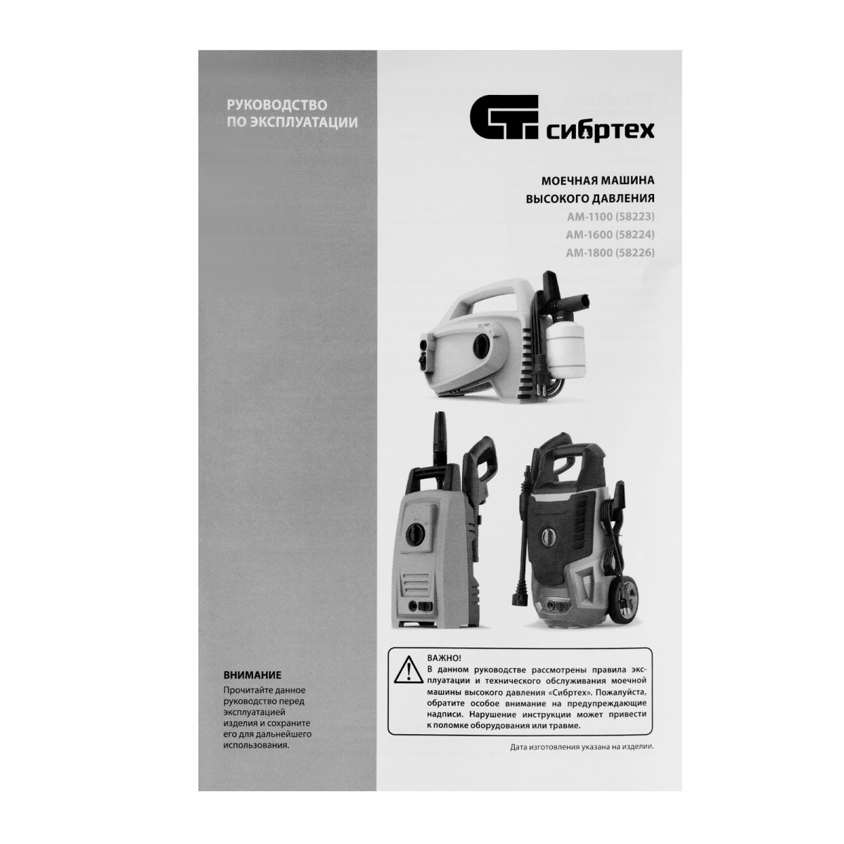 Моечная машина высокого давления АМ-1800, 1800 Вт, 140 бар, 350 л/ч, колесная Сибртех