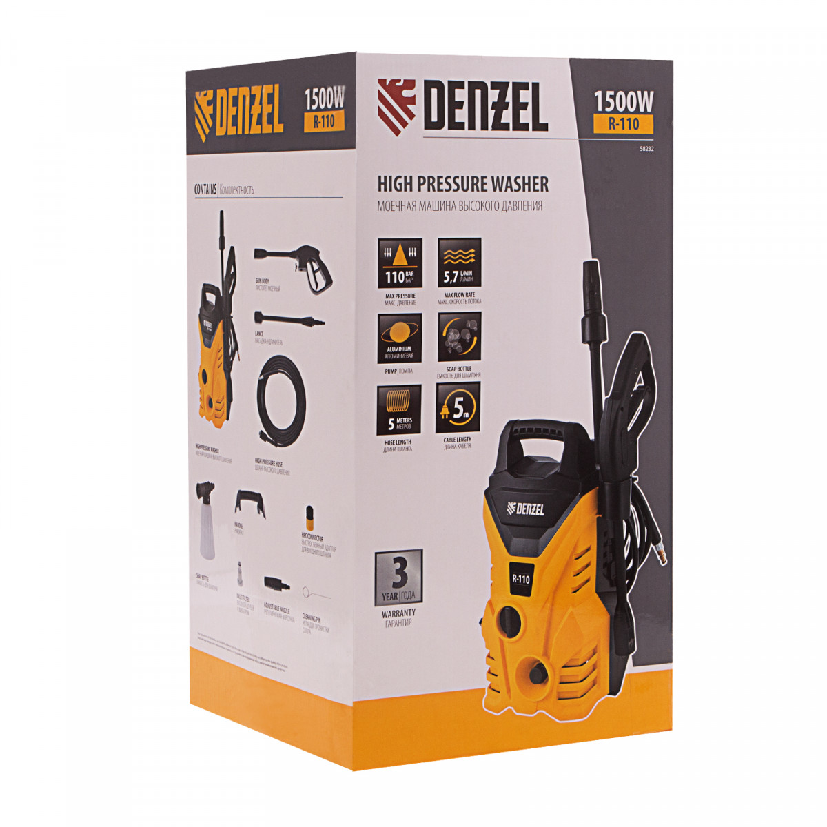 Моечная машина высокого давления R-110, 1500 Вт, 110 бар, 5,7 л/мин, переносная Denzel