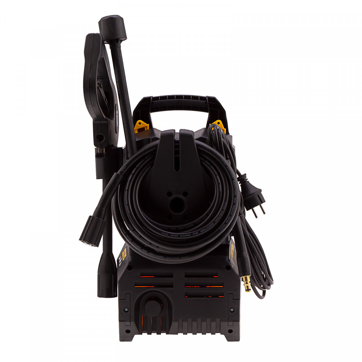 Переносная моечная машина высокого давления Denzel R-110 58232 производительностью 5,7 л/мин, мощностью 1500 Вт, с максимальным давлением 110 бар, используется для мытья автомобилей, садового инвентаря, велосипедов, дорожек и заборов. Мощный мотор и помпа высокой производительности позволяют быстро справляться даже с серьезными загрязнениями. Если нет доступа к водопроводу, мойка может осуществлять забор воды из резервуара в режиме самовсасывания, теряя при этом всего 5% давления.