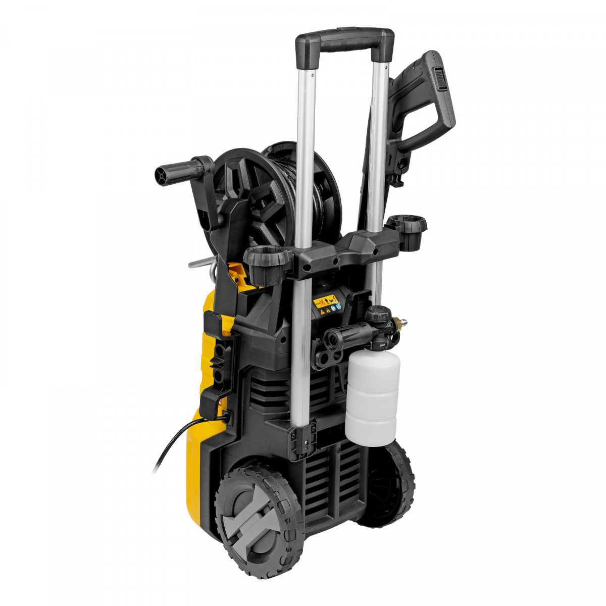 - Максимально комфортное передвижение — длина шнура питания составляет 5 м, длина шланга высокого давления увеличена до 8 м.