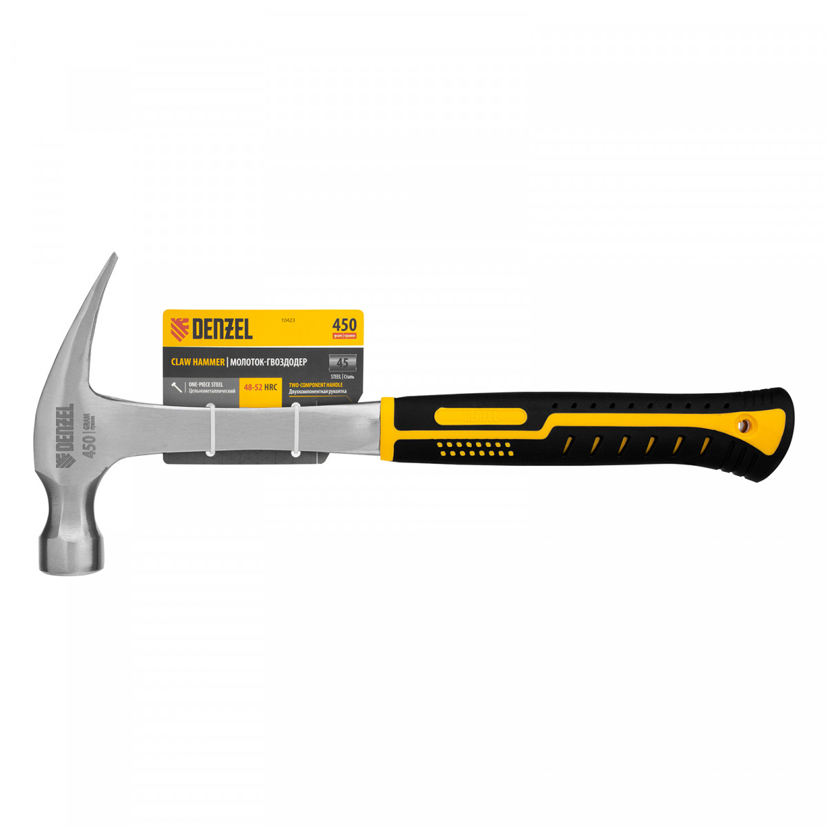 Молоток-гвоздодер 450 г, цельнометаллический, двухкомпонентная рукоятка Denzel