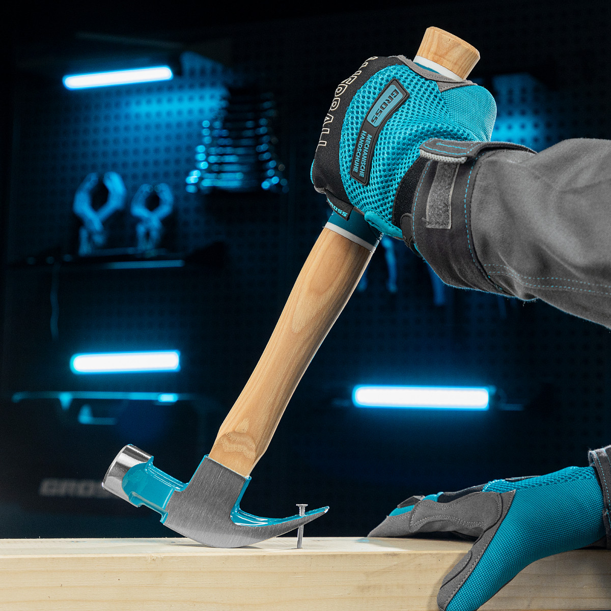 Молоток-гвоздодер, 450 г, угол 45, магнит, обрезиненная рукоятка American hickory GROSS