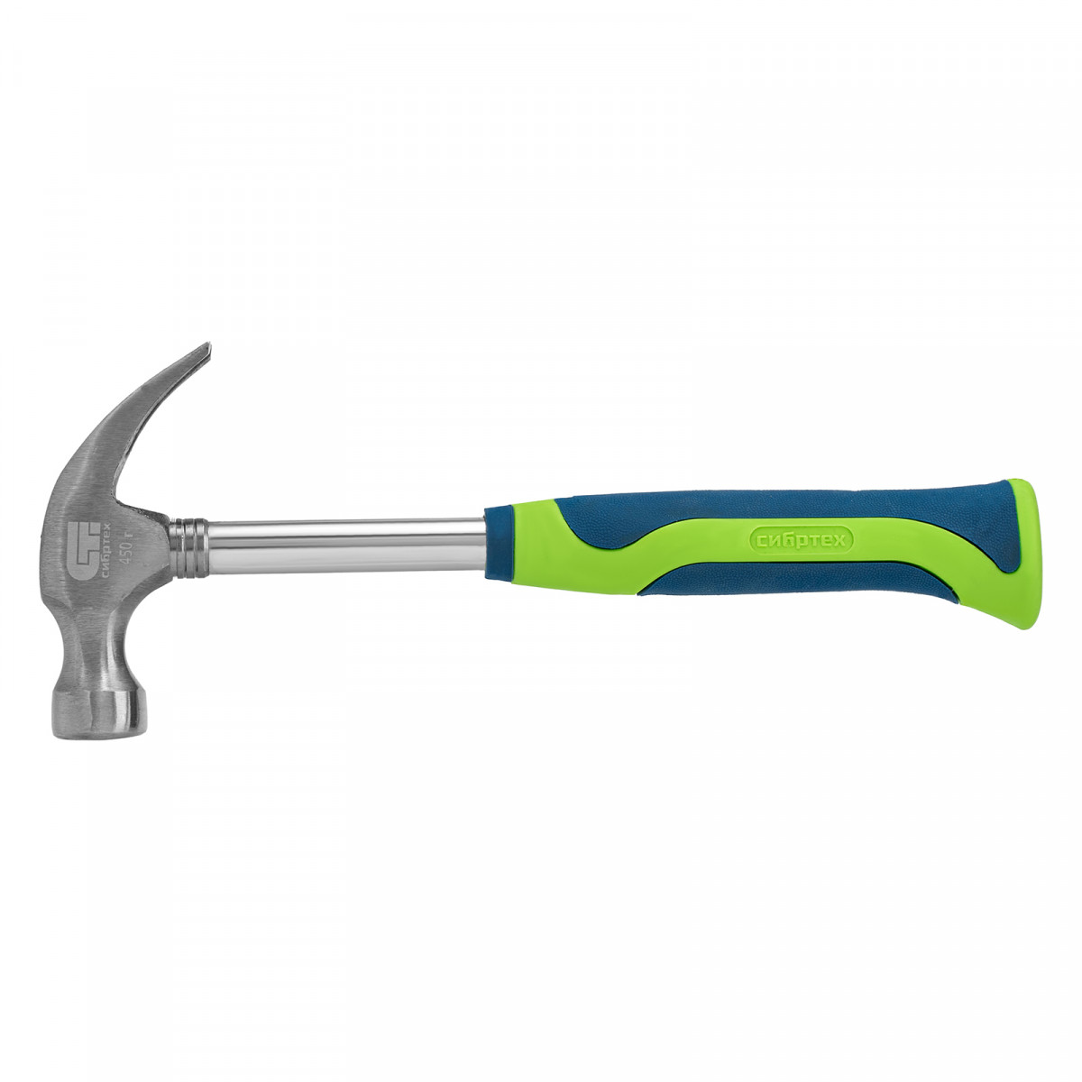 Молоток-гвоздодер, металлическая трубчатая обрезиненная рукоятка, вес 450 г, боек 27 мм Сибртех