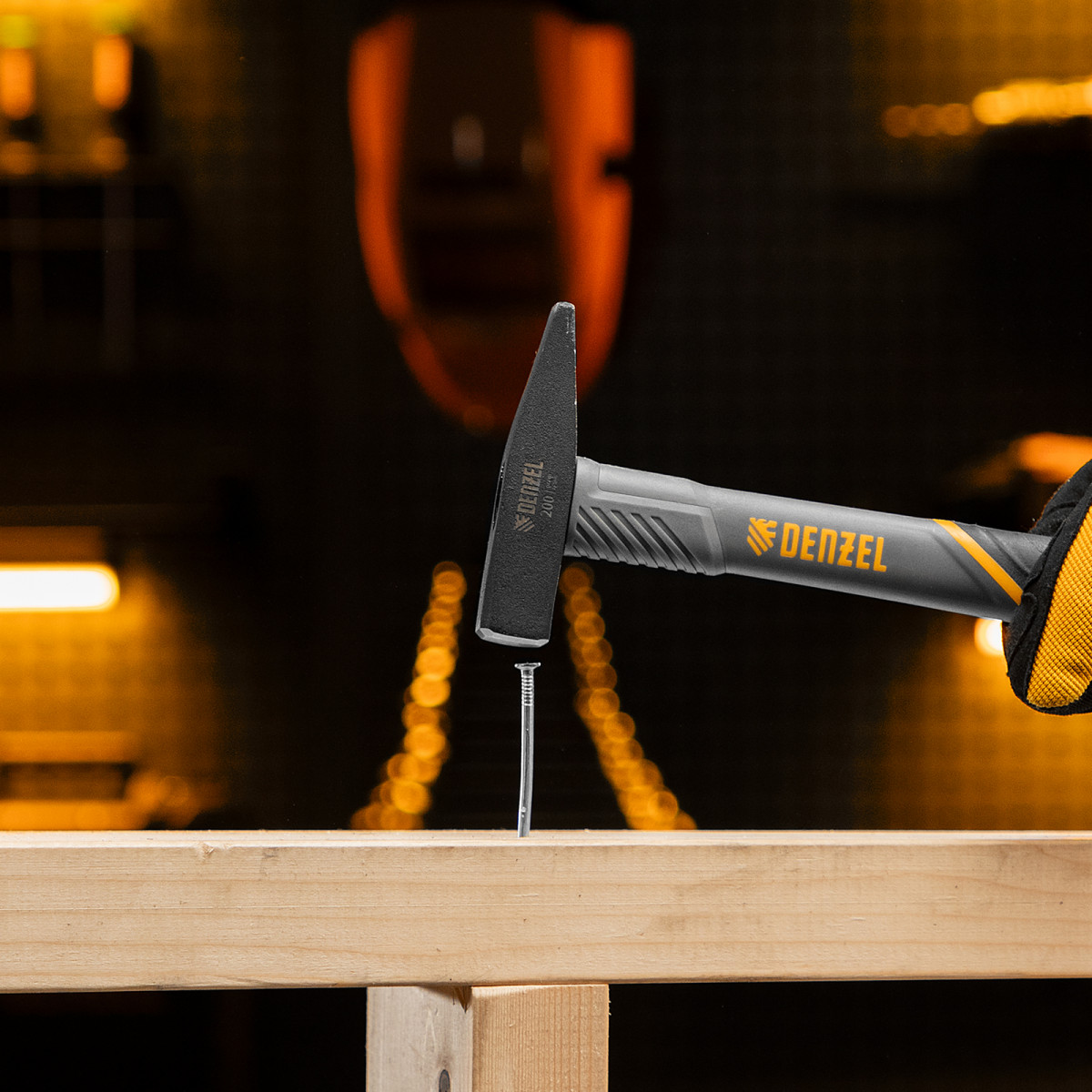Молоток слесарный, 200 г, кованый, фибергласовая рукоятка c TPR покрытием Denzel