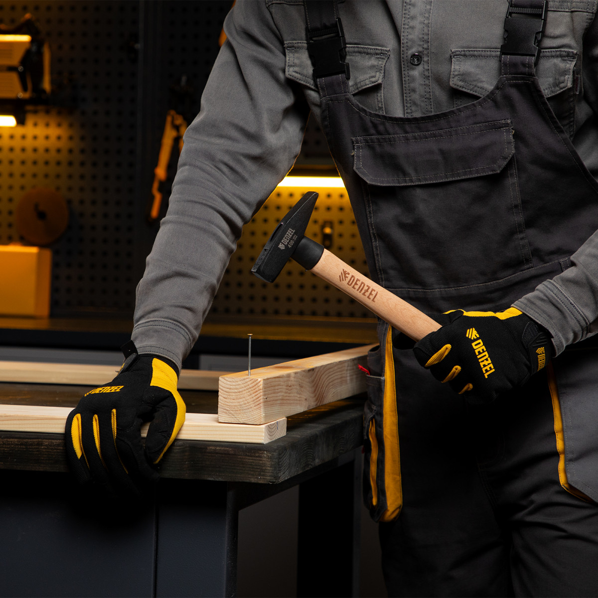 Слесарный молоток Denzel 10428 с квадратным кованым бойком весом 400 г предназначен для забивания гвоздей и другого крепежа и для работы с металлическими заготовками. Инструмент применяется во время слесарных или столярных работ в быту, также будет полезен профессионалам.