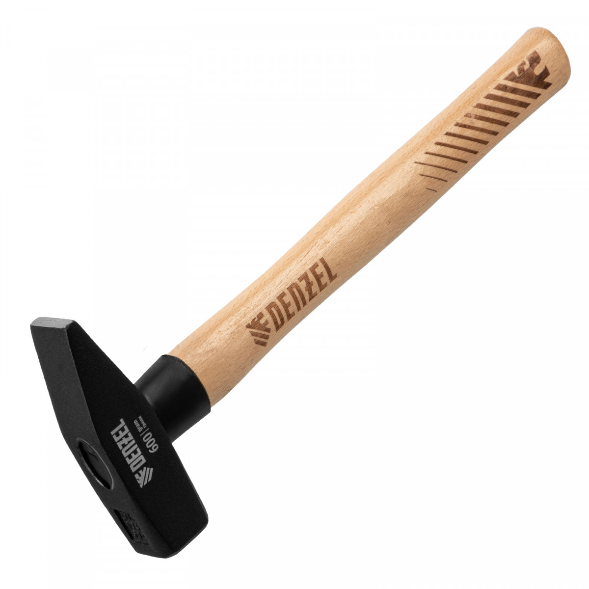 Молоток слесарный, 600 г, кованый квадратный боек, буковая рукоятка Denzel