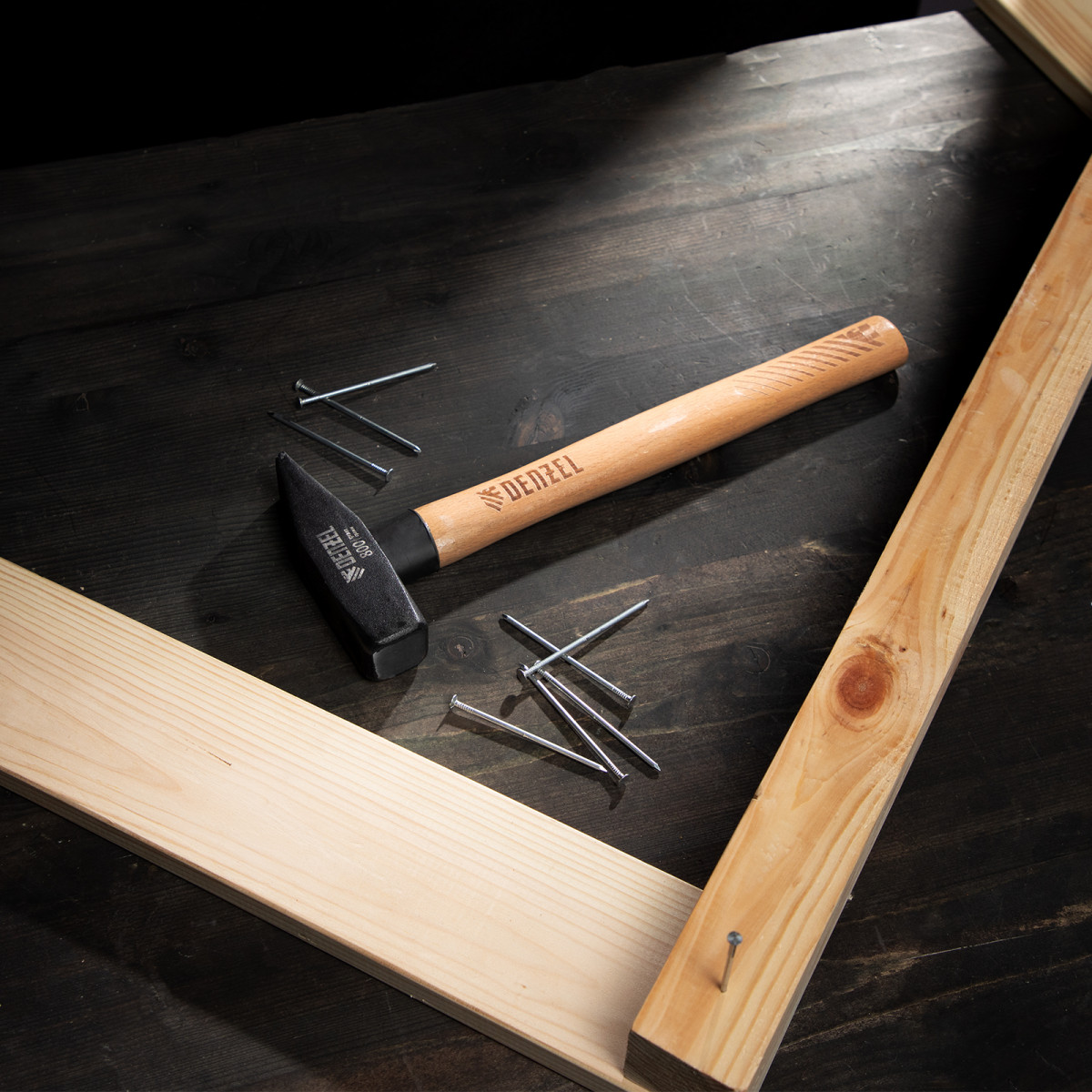 Слесарный молоток Denzel 10435 с квадратным кованым бойком весом 800 г предназначен для забивания гвоздей и другого крепежа и для работы с металлическими заготовками. Инструмент применяется во время слесарных или столярных работ в быту, также будет полезен профессионалам.