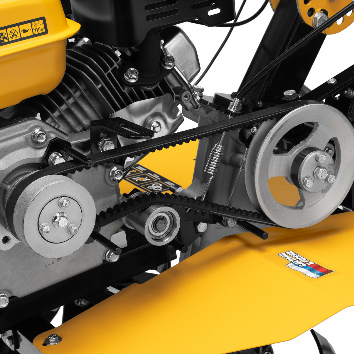 - Безопасность пользователя — защитные крылья предотвращают вылет комьев земли и других предметов.