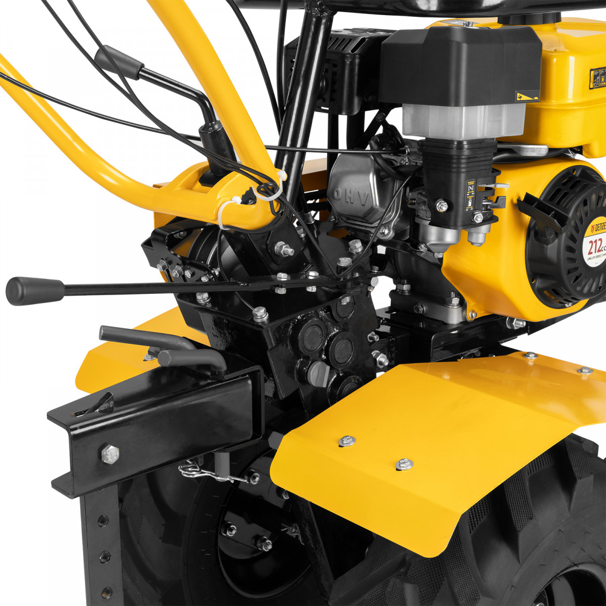 - Безопасная эксплуатация — широкие защитные крылья предотвращают вылет комьев земли и других предметов в сторону пользователя.