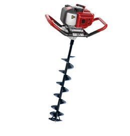 Мотобур Elitech мощностью 2.5 л.с. используется для проделывания отверстий в грунте и во льду диаметром до 20 см. Оборудован 2-х тактным бензиновым двигателем объемом 52 куб.см. На рукоятки вынесены органы управления для удобства при работе.