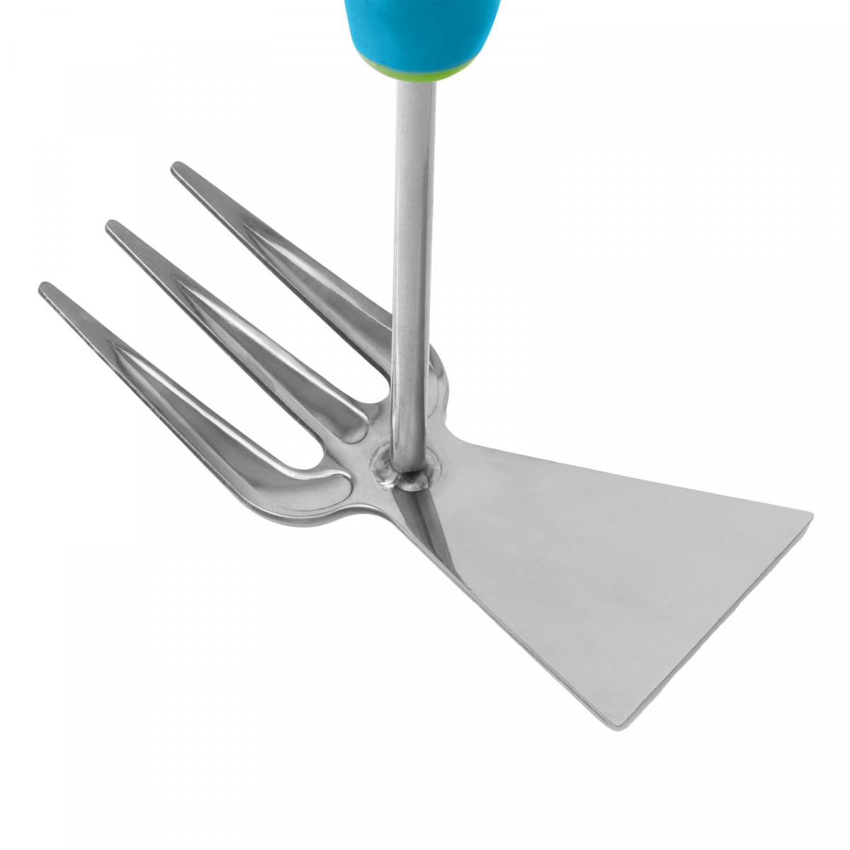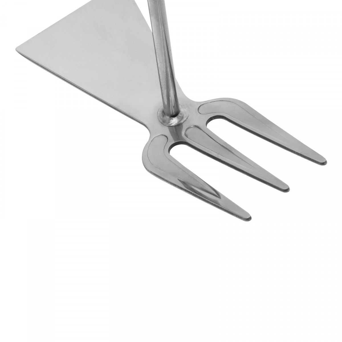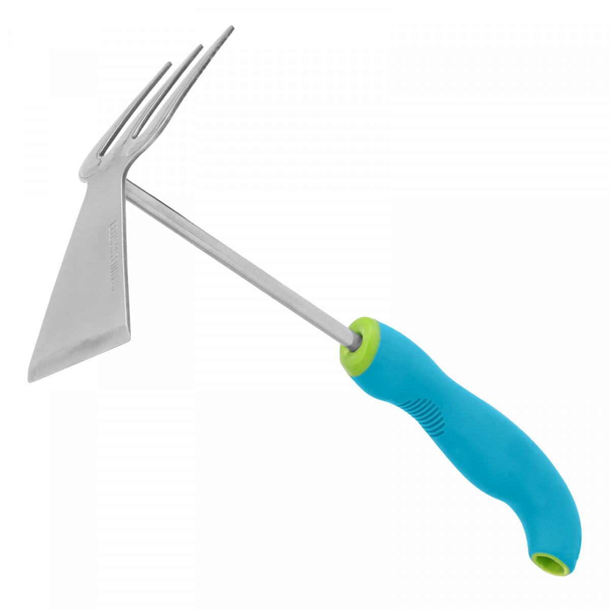 Комбинированная мотыжка Palisad PREMIUM PLUS 62055 из нержавеющей стали, 70 х 290 мм, с двухкомпонентной рукояткой, заменяет сразу два инструмента — рыхлитель и мотыгу. С ее помощью можно прополоть и разрыхлить почву, удалить мелкие сорняки, окучить растения, сформировать углубления под посадку семян. За счет небольших габаритов 70 х 290 мм мотыжка оптимально подходит для работ между рядами грядок, на клумбах с близко посаженными растениями и в труднодоступных местах.