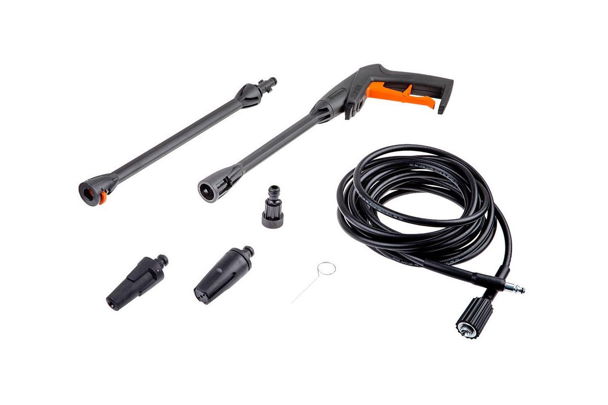 Компактная мойка высокого давления любительского класса и периодического использования. Оптимальный вариант для работы на небольших по площадях приусадебных участках, для очистки террас, оград и заборов, садовых дорожек и мебели. Потребляемая мощность 1500 Вт (220В). Максимальное давление 125 бар. Металлическая конструкция насоса. Расход воды 320 л/ч. Пистолет – распылитель с шарнирными соединениями облегчает использование. Шланг с текстильной оплёткой, длинной 7 м, и катушкой для его хранения, форсунка «плоская струя», форсунка «ротор» и нерегулируемый пенный распылитель в комплекте.