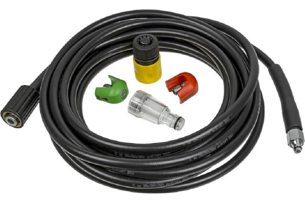 Длинный 8-метровый шланг позволяет мыть машину, не передвигая мойку.