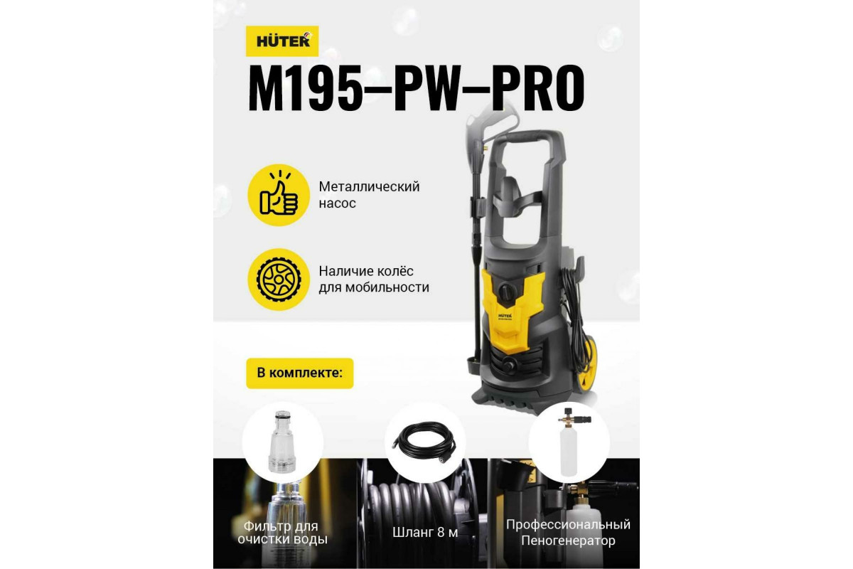 Мойка Huter M195-PW-PRO 70/8/17 высокого давления быстро и эффективно избавит от загрязнений различные транспортные средства, дома, фасады и дорожки.