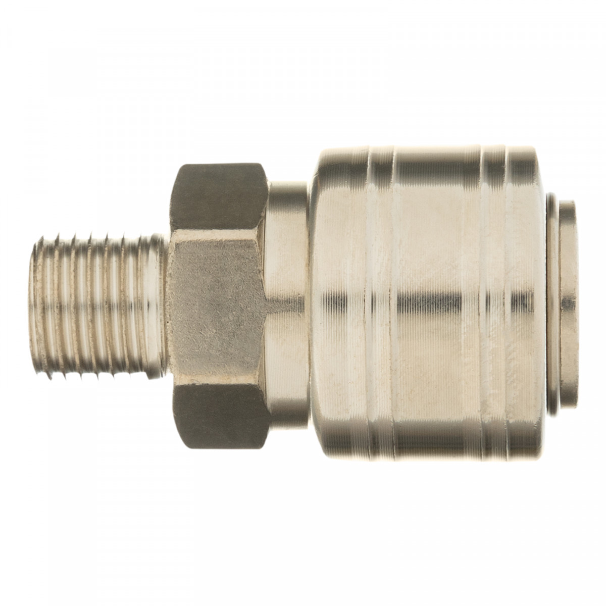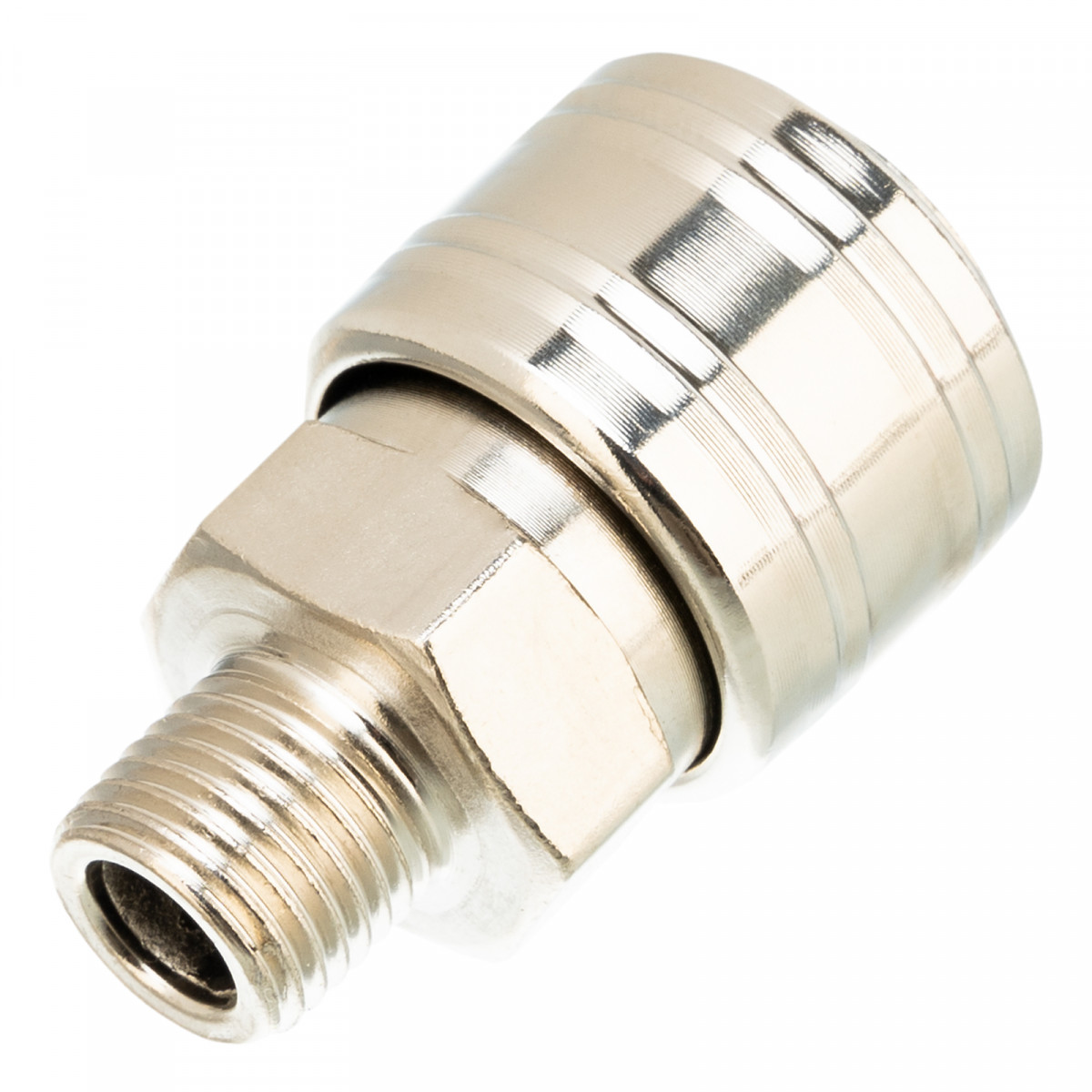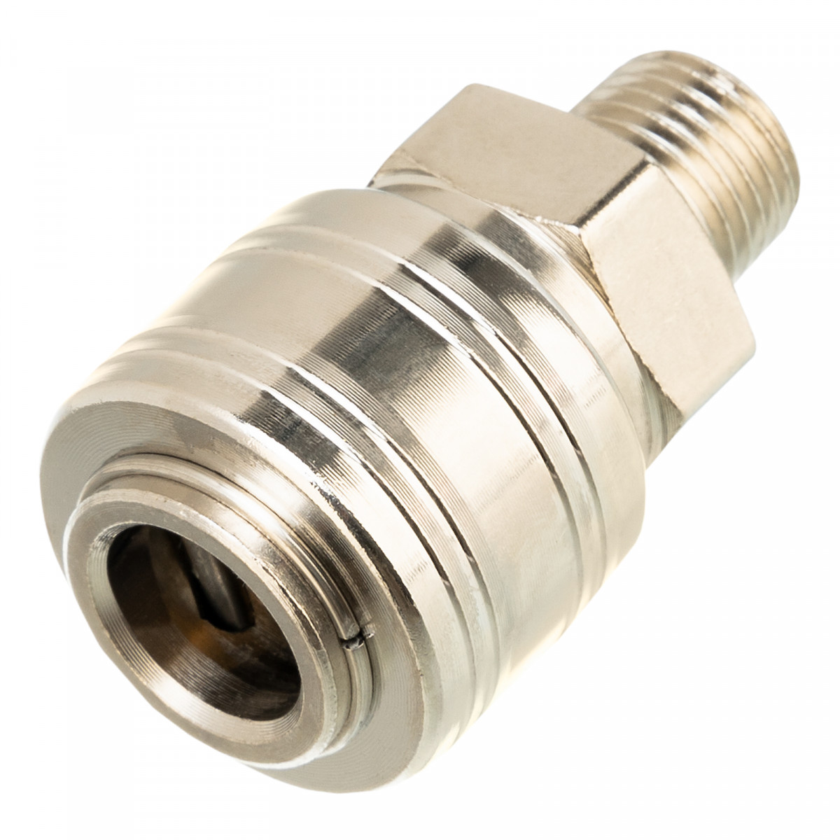 Универсальная муфта Stels 57051 типа «мама», с внешней резьбой 1/4″ используется для быстросъемного соединения выходного отверстия компрессора с пневматическим шлангом. Подключение не занимает много времени, с ним справится даже начинающий пользователь. Муфта используется при проведении строительных и ремонтных работ.