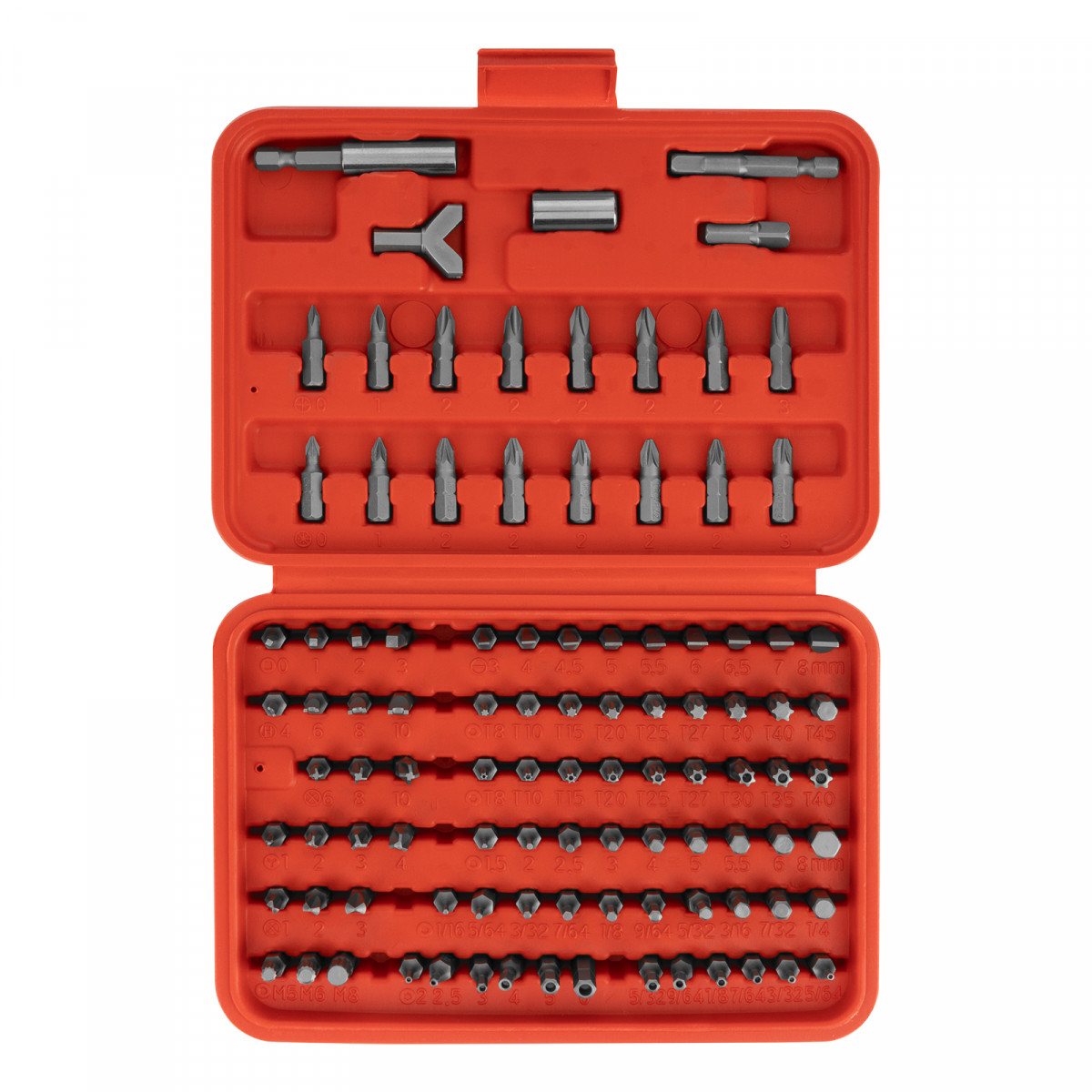 Пластиковый кейс - 1 штБиты 25 мм: , Philips: РН0, РН1, РН2 (5 шт), РН3, Pozidrive: PZ0, PZ1, PZ2 (5 шт), PZ3, , Slotted: SL3, SL4, SL45, SL5, SL55, SL6, SL65, SL7, SL8, , Torx: T8, T10, T15, T20, T25, T27, T30, T40, T45, , Torx Tamper: TT8, TT10, TT15Адаптер - 1 штДержатель бит - 1 шт