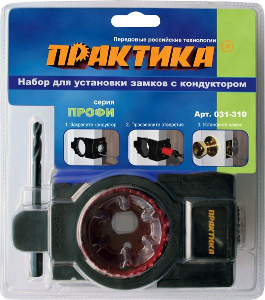 Набор для замков ПРАКТИКА (коронка 54 мм, коронка 25 мм, держатель, кондуктор)