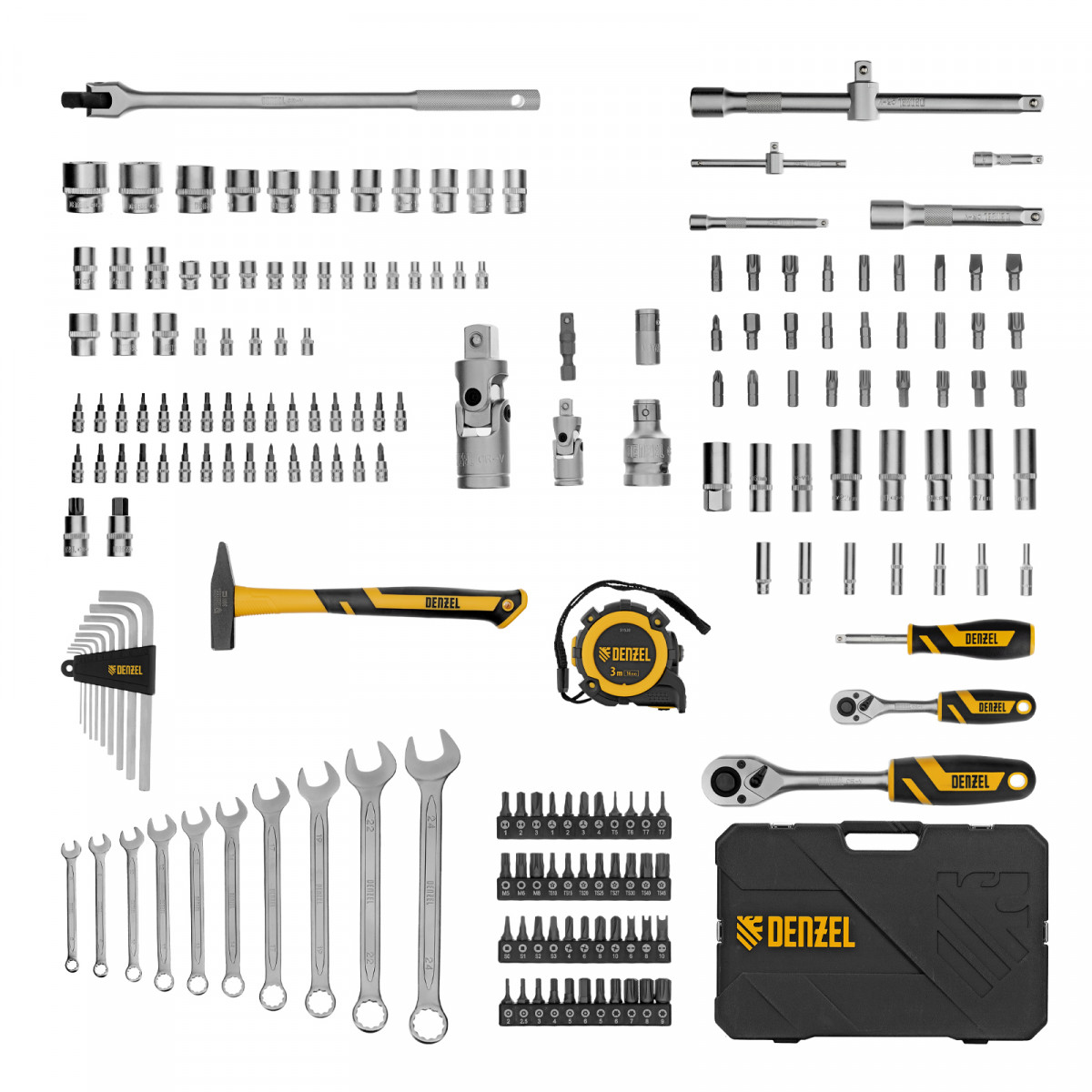 Набор инструментов, 1/2", 1/4", CrV, S2, пластиковый кейс, 194 предмета Denzel