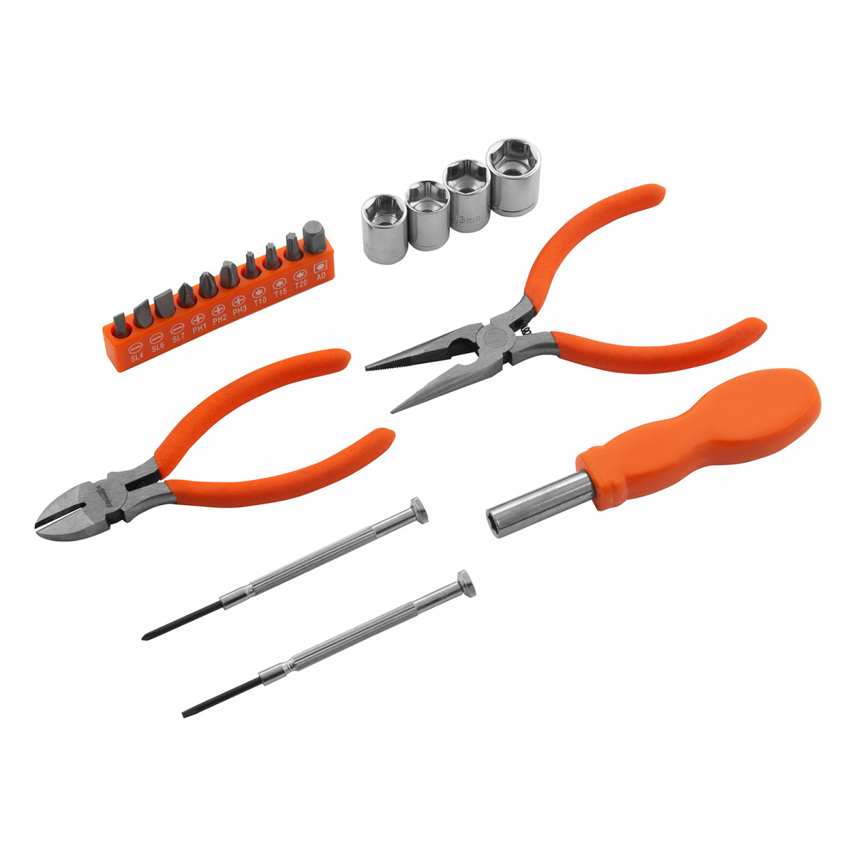 Набор Sparta 13546, 19 предметов, пригодится при выполнении слесарно-монтажных работ. Он будет полезен в хозяйстве для частных мастеров. В наборе есть отвертки для точных работ, отвертка для бит, биты и торцевые головки для монтажа/демонтажа крепежных элементов, бокорезы и длинногубцы для захвата, удержания и перекусывания проводов и мелких деталей.