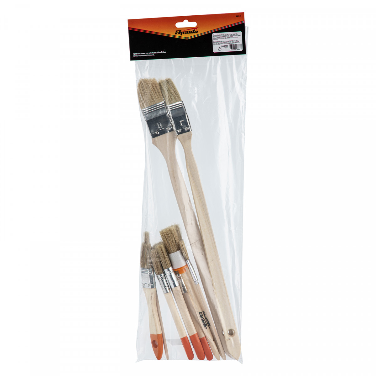 Набор Sparta 841155 включает 10 кистей: плоские шириной 3/4-2 дюйма, круглые №2, №4, радиаторные шириной 1, 1,5 дюйма и кисти для масляных красок №2,6. Предназначен для проведения покрасочных работ. Кисти с натуральной щетиной оптимальны для нанесения составов на основе растворителей, а также масляных красок. С их помощью можно получить равномерное финишное покрытие.